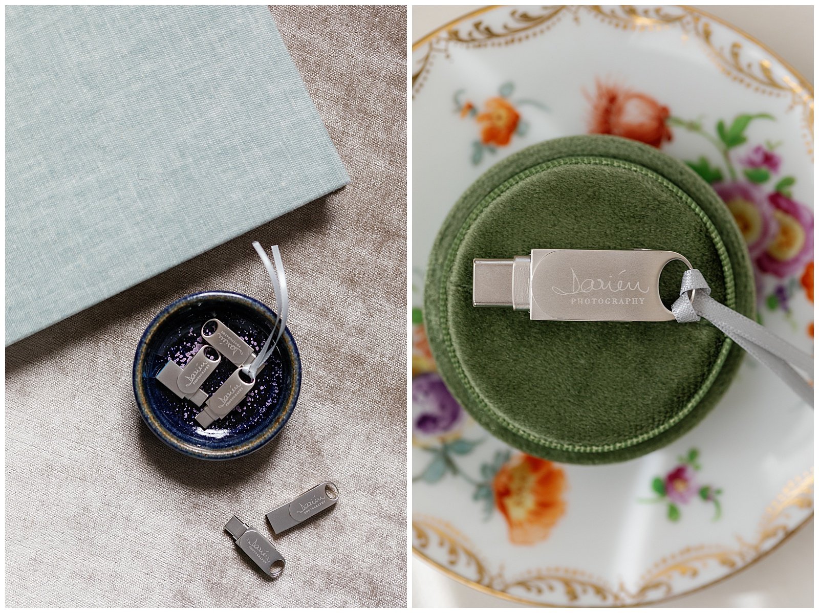 Darien Photography uses classic, laser engraved branded USB portable memory flash drives, for her clients.